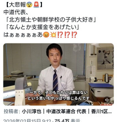 中道・小川代表「北方領土や朝鮮学校の子供大好き」「なんとか支援金をあげたい」