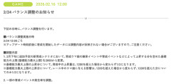 【速報】2/24 バランス調整のお知らせ