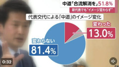 【速報】中革連の代表が小川淳也氏に代わり党のイメージが「変わった」13.0%「変わらない」81.4%