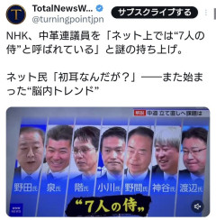 NHK「ネット上では当選した立憲議員が『7人の侍』と呼ばれている」←マジ?
