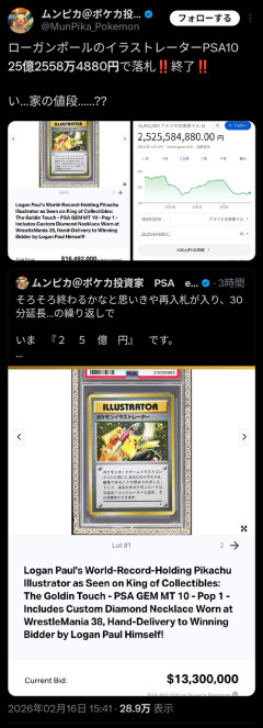 1: 2026/02/16(月) 18:08:45.93 ※関連記事 【画像】ポケモンカード転売ヤー「5万箱ゲット、4億円の利益を確保です」…