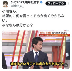 1:2026/02/16(月) 21:23:26.84 ID:gzlDRTYE0小川さん。絶望的に何を言ってるのか良く分からない。みなさんは分かる?pic.twitter.com/FPG6VjMbGm— ひで2022真実を追求 (@hide_Q_) February 16, 2026転載元スレッド:…