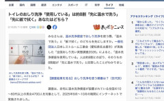 トイレのおしり洗浄、約8割「先に温水で洗う」約2割「先に紙で拭く」あなたはどちら?