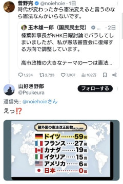 1 名前:名無しさん@涙目です。[sage] 投稿日:2026/02/17(火) 12:50:35.11 ID:OYGdlKw+0 3 名前:名無しさん@涙目です。[] 投稿日:2026/02/17(火) 12:51:26.82 ID:5oT4ki270 何言ってんだこいつは 171 名前:名無しさん@涙目です。[] 投稿日:2026/02/17(火) 13:39:57.37 ID:zlFVrby60 時代が変わったのに変えられねえ憲法とか、それこそ要らねえだろw 56 名前:名無しさん@涙目です。[] 投稿日:2026/02/17(火) 13:01:39.56 ID:Vz5Kl1c80 アメリカ合衆国憲法なんて修正条項の雨あられだぞ 42 名前:名無しさん@涙目です。[sage] 投稿日:2026/02/17(火) 12:59:16.85 ID:NxjB4AAP0 タイ「えっ?この前国民投票で憲法改正が承認されたんだけど??」 27 名前:名無しさん@涙目です。[] 投稿日:2026/02/17(火) 12:56:15.15 ID:krYZrDHa0 じゃあ世界中憲法いらないよね 日本以外の国は憲法コロコロ変えるし 36 名前:名無しさん@涙目です。[sage] 投稿日:2026/02/17(火) 12:57:53.29 ID:Q76xvoCP0 憲法どころか法律を遵守してないだろ 73 名前:名無しさん@涙目です。[] 投稿日:2026/02/17(火) 13:05:19.33 ID:oHYdi11/0 性犯罪犯して仮釈放中に裁判に出頭せずに逃亡した人物がなんでエラソーにしてんの? 221 名前:名無しさん@涙目です。[sage] 投稿日:2026/02/17(火) 14:00:34.17 ID:m5Aas8z70 菅野さん、AIでこんなの出てるけどホントなの? ≫米国での暴行事件: 1997年と1998年に、米国テキサス州で同居していた女性に対して傷害事件を起こし、逮捕されています。1998年の裁判では、罰金刑と保護観察処分を受けています。保釈中に国外逃亡したと報じられています。 14 名前:名無しさん@涙目です。[] 投稿日:2026/02/17(火) 12:53:42.95 ID:qQkVwFDw0 いやお前らには関係ないだろ はよアメリカ行って捕まれよ 43 名前:名無しさん@涙目です。[] 投稿日:2026/02/17(火) 12:59:17.03 ID:UIUEt8jJ0 時代が変わっても憲法は変えてはならないという主張ならわかるが、 要らないてのは、どういうロジック? 137 名前:名無しさん@涙目です。[sage] 投稿日:2026/02/17(火) 13:22:45.78 ID:/1szBMJT0 >>43 パヨクにロジックなどない お気持ちのみ 34 名前:名無しさん@涙目です。[] 投稿日:2026/02/17(火) 12:57:15.15 ID:sWW/OcnE0 憲法は聖書か? 頭おかしい 40 名前:名無しさん@涙目です。[sage] 投稿日:2026/02/17(火) 12:58:54.98 ID:q6gqCEAr0 >>34 聖書も新旧あるぞ 13 名前:名無しさん@涙目です。[] 投稿日:2026/02/17(火) 12:53:28.78 ID:vIKxQ9Fd0 憲法を教典か何かと勘違いしてるんだろね ただの法律なのに 8 名前:名無しさん@涙目です。[sage] 投稿日:2026/02/17(火) 12:52:41.15 ID:Cb4nueS30 神聖不可侵な憲法の方が怖いわ(;´Д`) 88 名前:名無しさん@涙目です。[sage] 投稿日:2026/02/17(火) 13:09:29.64 ID:cNUmejTf0 >>8 パさんに取っては経典なんでしょ しかも原典しか認めない原理主義者 348 名前:名無しさん@涙目です。[] 投稿日:2026/02/17(火) 15:34:08.70 ID:ThsUvuEG0 ママ戦争とめてくるわのタグがすこしバズった理由に 戦争反対が響く年代がいるらしい そのような立場の人への配慮は必要だが、 こいつの場合は配慮ではなくウケ狙いで言ってるからダメ 353 名前:名無しさん@涙目です。[] 投稿日:2026/02/17(火) 15:36:19.96 ID:L0FDWXcp0 >>348 戦争には反対だから自民党に入れました 356 名前:名無しさん@涙目です。[sage] 投稿日:2026/02/17(火) 15:36:41.49 ID:qIOWXnI90 >>348 若い子は大体平和主義だよ 視野が狭すぎて話せばわかるなんて身内同士でしか通用しないってことがわからないから 416 名前:名無しさん@涙目です。[] 投稿日:2026/02/17(火) 16:49:24.71 ID:auC34vzK0 >>348 バズってない 左翼はSNSで連投してバズったとかトレンド入りしたとか 都合よくSNSを使ってマイノリティをあたかもマジョリティのように語る こと日本では活動家とヲタクの工作ツールになってるのがX 108 名前:名無しさん@涙目です。[] 投稿日:2026/02/17(火) 13:15:05.50 ID:hXDgrVmN0 権力の暴走を止めるための権力を圧倒的な権力者が変えるのは民主主義の崩壊だよ 高市政権下では論外 115 名前:名無しさん@涙目です。[] 投稿日:2026/02/17(火) 13:17:26.26 ID:Lh4leo1G0 >>108 神奈川新聞の関係者ですか? 全く意味がわからない 110 名前:名無しさん@涙目です。[sage] 投稿日:2026/02/17(火) 13:16:13.30 ID:lYg5cHNY0 >>108 せやなじゃあ米帝に変えさせられた今の憲法から大日本帝国憲法に戻さないと 123 名前:名無しさん@涙目です。[] 投稿日:2026/02/17(火) 13:20:08.75 ID:IBUJhU+50 >>108 圧倒的に権力を有してないと憲法改正できない仕組みなんですが… 逆に支持されてないやつが気軽に変更出来たほうが良いのかな? 147 名前:名無しさん@涙目です。[] 投稿日:2026/02/17(火) 13:26:25.21 ID:Uo1sQn0q0 アメリカ嫌いな人がアメリカの作った憲法を崇めてる不思議 338 名前:名無しさん@涙目です。[sage] 投稿日:2026/02/17(火) 15:27:35.00 ID:c2vlflY30 なぜ左翼は 大嫌いなアメリカが作ったキュージョーを ありがたがるのか? 355 名前:名無しさん@涙目です。[] 投稿日:2026/02/17(火) 15:36:33.46 ID:ThsUvuEG0 >>338 言われてみるとたしかに 343 名前:名無しさん@涙目です。[] 投稿日:2026/02/17(火) 15:30:32.51 ID:MkLVE+QL0 >>338 コレなんだよなあ だったら日本人が日本の法律を1から作るべき 364 名前:名無しさん@涙目です。[] 投稿日:2026/02/17(火) 15:43:50.27 ID:g/jLXIiJ0 >>338 共