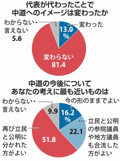 中道、「支持」回答の5割超が「70歳以上」 小川新代表選出も「変わらない」が8割超