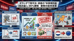 1: 名無し 2026/02/18(水) 14:20:45.12 ID:nLtH_Box3_2026 オランダ下院は2026年2月、貯蓄や投資から得た「実際のリターン」に36%の税を課す新法案(Wet werkelijk rendement box 3)を可決した。2028年より施行予定。 最大の特徴は、売却していない株式や仮想通貨、さらには自宅などの「含み益(資産価値の上昇分)」も課税対象となる点だ。現金収入がない状態でも資産価値が上がれば納税義務が生じるため、納税のために自宅を売却せざるを得ないケースも想定されており、あまりに過酷な「社会主義的政策」として国内外で波紋を広げている。 The Burning Platform ■要約 ・オランダ下院が資産の「未実現利益(含み益)」に対する36%課税法案を可決 ・2028年1月1日施行。株式、債券、暗号通貨、不動産がすべて対象 ・「持っているだけで税金」:自宅の評価額が上がれば、売る前でも現金で納税が必要 ・最高裁による「従来の仮想リターン課税」の違憲判決を受けた抜本改革 ・富裕層や投資家の国外流出(EU内移住)を加速させる懸念が浮上 【朗報】しばき隊、暴行容疑での起訴確定で活動資金もろとも完全沈没。総取締の激昂で「日当カット」の... 【今日の人気News】 中道小川新代表、泉健太に実質戦力外通告wwwww 【謎】 アメリカ人が衝撃を受けた日本の「価格差」。母国では3倍する“ある食べ物”とは・・・…