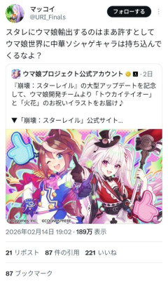 【画像】ウマ娘のファンさん、中国のソシャゲとコラボした公式にキレてしまう