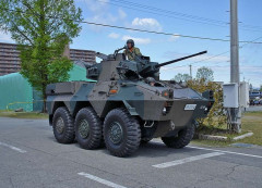 陸自第15旅団所属の87式偵察警戒車、砲身を露出し走行…沖縄・金武町の国道!