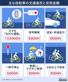 1. 匿名@ガールズちゃんねる 今回の法改正により、16歳以上の自転車運転者を対象に、比較的軽微な違反であっても「反則金」の支払いを求める制度が適用されます。対象となる違反は、信号無視、一時不停止、歩道での徐行違反、通行禁止場所の走行など、113種類にのぼる見込みです。反則金の額は違反内容によって異なりますが、概ね3000円から1万2000円程度に設定される予定です。 一方で、酒酔い・酒気帯び運転や、相手に危険を及ぼすような極めて悪質な走行については、これまで通り「赤切符」が交付され、刑事罰の対象となります。 あなたは、この青切符の導入をどのように考えますか? また、日常の移動や交通マナーにどのような影響を与えると思いますか? 2026/02/20(金) 08:43:32…