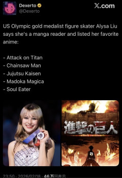 【画像】アメリカ女子フィギュア・アリサリュウさんが好きなアニメ漫画、浅いwwwwww
