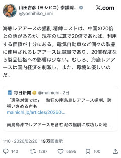 【朗報】海底レアアース、中国の20倍コスト問題「現在ま試算で20倍程度であれば利用する価値が十分にあり、製品価格への影響は少ない」ことが判明!!