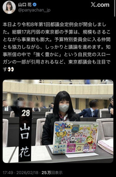 2: 2026/02/19(木) 19:23:20.43 ID:3thZPHfhM 国民民主の東京都議・山口花がノートPCにシールをゴテゴテ貼りすぎだと話題に→ シール批判にお気持ち表明…