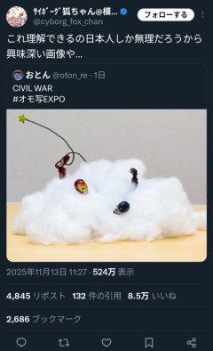 1: 以下、?ちゃんねるからVIPがお送りします 2026/02/19(木) 18:58:22.849 ID:qAzecakb0.net うおおお!!日本スゲェ!!! 3: 以下、?ちゃんねるからVIPがお送りします 2026/02/19(木) 18:58:46.531 ID:ECigEvmH0.net トムとジェリーじゃん…