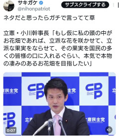 立憲・小川幹事長「もし仮に私の頭の中がお花畑であれば、立派な花を咲かせせたい」