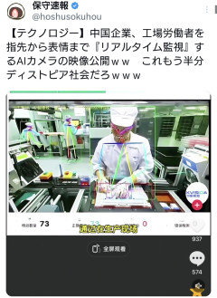 中国企業、工場労働者を指先から表情まで『リアルタイム監視』するAIカメラの映像公開w