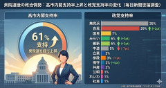 1: 名無し 2026/02/22(日) 19:12:45.32 ID:H6nS4vK90 毎日新聞が実施した世論調査によると、高市内閣の支持率は61%に達し、衆議院選挙を経て上昇したことが明らかになりました 政党支持率では、自民党が前回の27%から29%へと数字を伸ばしています 次いで国民民主党が7%を維持し、新興勢力のみらいと日本維新の会がそれぞれ6%で並ぶ結果となりました 一方で立憲民主党は2%、公明党は1%と低迷しており、無党派層は35%で横ばいとなっています 毎日新聞 ■要約 ・高市内閣の支持率が衆院選を経て61%に上昇 ・自民党の支持率は29%となり前回比で2ポイント増加 ・新興勢力のみらいが支持率6%に急増し維新と並ぶ勢いを見せる ・立憲民主党や公明党などの既存政党は低水準での推移が継続 ・無党派層は35%を占め依然として最大の勢力となっている 【やさしい世界】ロボが転ばないよう人間が支える社会へ 玉木雄一郎氏、過去発言が波紋「麻生さんの口が曲がってる…」「安倍総理がトイレに抜ける…」「野田総... 中国「日本が台湾に介入すればそれは“侵略”だ」と国連で公式警告。ついに中共が本気の『戦争ライン』を突きつけてきて・・・…