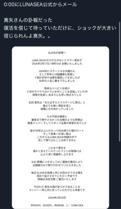 【号外】LUNA SEA 真矢さん死去 56歳・・