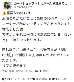 【悲報】 カードショップ店員「くさいオタクにはファブリーズを浴びてもらいます!」
