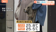 1: 名無し 2026/02/22(日) 17:48:40.77 ID:z7hVyaOL0熊本県内で今年初めて25度を超える「夏日」 春一番も…
