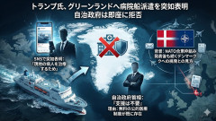 1: 名無し 2026/02/23(月) 20:35:12.48 ID:qZ8n2Wp5 トランプ大統領は22日、SNSに「グリーンランドに素晴らしい病院船を派遣する」と投稿した。現地で治療を受けられずにいる多くの病人を治療するためだと理由を述べている。 これに対し、グリーンランド自治政府のニールセン首相は「我が国には国民が無料で治療を受けられる公的医療制度がある」と述べ、派遣を断る意向を明らかにした。 テレ朝NEWS ■要約 ・トランプ氏がグリーンランドへの病院船派遣をSNSで突如表明 ・現地の病人を治療するためと主張するも自治政府側は即座に拒否 ・首相は無料の公的医療制度の存在を挙げ支援は不要であると回答 ・NATOとの合意枠組み発表後も続くデンマークへの挑発との見方 少子化対策に何兆円もかけてるのに出生数が急激に減ってる理由 【悲報】 中革連の“ヤジ部隊”が落選の衝撃で一斉離党。小川新体制を見捨て「自分だけ助かろう」と泥舟から脱出する敗残兵たちの無様な逃走劇・・・ ※※※※「※※※※中に女にコレやったらマ※コが締まりまくって30秒でイケるw」← エ※すぎだろ……