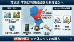 1: 名無し 2026/02/24(火) 16:35:12.45 ID:iB9rK3mW0 茨城県は2月18日、令和8年度の予算案に、不法就労している外国人に関する情報を募り、県警の摘発に繋がった場合に情報提供者へ数万円程度の「通報報奨金」を支払う制度を盛り込んだ。 同県では2024年の不法就労者の摘発数が3452人に達し、3年連続で全国最多となっている背景があり、大井川知事は「問題解決のために抜本的な対策を取らないといけない」と語っている。 都道府県レベルでの報奨金制度は例のない施策だが、国(入管庁)では1951年より類似の制度が実施されている。 SNS上では治安維持への期待の一方で、ヘイトや差別を助長しかねないとの懸念もあがり、賛否が分かれている。 女性自身 ■要約 ・茨城県が不法就労外国人の通報報奨金制度を導入へ ・県警の摘発に繋がった情報提供者に数万円を支払う ・摘発数が3年連続全国最多という深刻な状況が背景 ・自治体レベルでの報奨金制度導入は都道府県で初 ・ネットでは治安対策への期待とヘイト助長の懸念が交錯 【緊急速報】イラン戦争、まもなく 【速報】 中国で目撃が相次ぐ「日本の無条件降伏」祝うボディーステッカーの車、日産の車だという渾身のギャクが発生wwww 【速報】 トランプ大統領、突然「グリーンランドに病院船派遣」 現地首相は「結構です」…