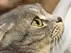 病院に連れてこられた毛玉さん。 やだにゃ~! ずっとパパさんにこんな感じ……
