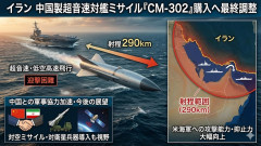 1: 名無し 2026/02/24(火) 20:10:45.12 ID:fG9kH2pL0 イランが中国から超音速対艦ミサイル『CM-302』を購入する契約が近づいていると報じられた。 購入予定のミサイルは約290キロメートルの射程を持ち、低空で高速飛行することで艦船の防御を回避する設計となっており、米海軍に対する脅威となる可能性がある。 イランは中国からの地対空ミサイルシステムや対衛星兵器の購入についても協議を進めており、軍事的な協力関係を深めることで米国の影響力に対抗する姿勢を強めている。 ロイター通信 ■要約 ・イランが中国製超音速対艦ミサイルCM-302の購入契約に向け最終調整中 ・射程290キロメートルで低空高速飛行により敵艦の迎撃を回避する性能を保有 ・米海軍が展開するイラン近海での攻撃能力および抑止力が大幅に向上する見通し ・対空ミサイルや対衛星兵器の導入も視野に中国との軍事協力を加速させる構え 【緊急速報】イラン戦争、まもなく 【速報】 中国で目撃が相次ぐ「日本の無条件降伏」祝うボディーステッカーの車、日産の車だという渾身のギャクが発生wwww 【速報】 トランプ大統領、突然「グリーンランドに病院船派遣」 現地首相は「結構です」…
