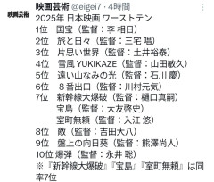 【悲報】映画芸術、2025年日本映画ワースト1位に『国宝』