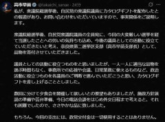 首相、当選祝いでカタログギフト配布 「政党交付金使用せず」と釈明