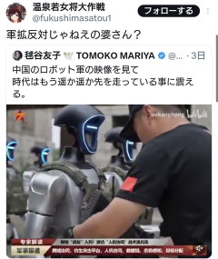 1: 名無しさん@ 2026/02/24(火) 22:22:03.14 ID:LZ9gA3v60● BE:662593167-2BP(2000) 中国のロボット軍団高市が軍拡を進め戦争挑発を続けてことからこれの最初の相手は日本軍になりそうだ。日本の若者は竹やりでこれに突撃させられる。 pic.twitter.com/hkWEjlgfNo— 中東紛争ニュース (@savashaberjp) February 20, 2026 20: 名無しさん@ 2026/02/24(火) 22:34:05.29 ID:M0d5II+a0 >>1 震えてないで止めてこなくていいの? 32: 名無しさん@ 2026/02/24(火) 22:45:08.98 ID:g4IgTXWi0 >>1 自衛隊反対 人民解放軍賛成 いったい何処の国の方ですかね 34: 名無しさん@ 2026/02/24(火) 22:47:20.15 ID:wAbN+ZUW0 >>1 パワードスーツ開発してんのアメリカと日本だけやぞ 69: 名無しさん@ 2026/02/24(火) 23:50:54.69 ID:JPWuH8fA0 >>1 どんだけ動けんだか… 5: 名無しさん@ 2026/02/24(火) 22:24:47.53 ID:eW50+ACJ0 二足歩行ロボットは兵器としては非効率 24: 名無しさん@ 2026/02/24(火) 22:37:55.96 ID:jXRzinuE0 震えてねえで止めてこいよ 44: 名無しさん@ 2026/02/24(火) 22:57:26.57 ID:IiiD3rOI0 ママ!まだ? 56: 名無しさん@ 2026/02/24(火) 23:23:54.45 ID:ERS9Q2cS0 あまいあまい 85: 名無しさん@ 2026/02/25(水) 02:01:58.96 ID:w3b0vdVD0 日本は猫型ロボットいそげ! 111: 名無しさん@ 2026/02/25(水) 06:15:35.42 ID:BNuYgxjz0 確かに対策は取らないといけないよね 120: 名無しさん@ 2026/02/25(水) 07:59:18.23 ID:0IcyzAHc0 ママ止めてくるわ 140: 名無しさん@ 2026/02/25(水) 14:13:30.00 ID:vXig21dI0 日本のSNSも沸かせた中国の人型ロボット演出、その舞台裏——Unitreeが仕掛けた“技術実験”の全貌 141: 名無しさん@ 2026/02/25(水) 14:16:33.64 ID:Ttz1ta7K0 中国の軍備はスゴイ だから無駄なんで日本は軍備縮小しろ うーん分かりやすく犬 引用元…