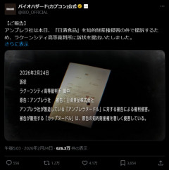 1: 2026/02/25(水) 10:06:22.92 ID:D3WdXp5Y0● BE:897196411-PLT(21000) 『バイオハザード』のアンブレラ社、日清食品を訴える―カップヌードルが「アンブレラヌードル」の知的財産権を侵害しているため 『バイオハザード』公式Xを通して、アンブレラ社より日清食品を提訴する旨が発表。ラクーンシティ高等裁判所に訴状を提出したそうです。 4: 2026/02/25(水) 10:07:52.61 ID:hKlbnS3v0 つまんない 5: 2026/02/25(水) 10:08:21.92 ID:KgFWJQWS0 コラボ商品発売の前宣伝? 7: 2026/02/25(水) 10:08:53.61 ID:USfGpiA80 アンブレラより日清のが強そう 8: 2026/02/25(水) 10:09:51.60 ID:q+Nms3Tp0 夢グループほどのインパクトはないな -->…