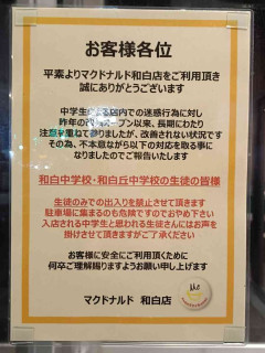 1. 匿名@ガールズちゃんねる ”マクドナルド和白店の貼り紙 名指しされとうやん ” <みんなの反応> ・これは。。。相当酷かったんでしょうね。。。 ・聞いた話によるとUSJも出禁らしい ・前に地元帰った時、近くのカフェのドアに「しばらく小学生、中学生だけの利用はお断り致します」って書いてあったな。名指しこそなかったけど…… ・姫路市の公立中全部がハウステンボス出禁なの思い出した(修学旅行でチューリップ抜きまくった学校があったので) ・同僚が通ってた高校は学校近くのヤマダ電機が出禁だったそうな ”和白民として和白の名誉のために申し上げますと、和白はとても良いところです!!!” 2026/02/26(木) 11:09:52…