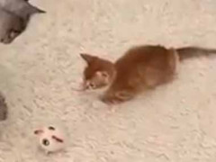 兄ネコが子猫に遊びを教えていた。ほら、ちゃんと注目して! → やさしい兄はこうします…