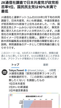 日本共産党、日本国民に最も嫌われている政党第一位に選定される