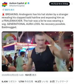 【ハゲ】イケメンYoutuberさん、ライブ配信中に帽子とヅラを剥ぎ取られ無事死亡。。。