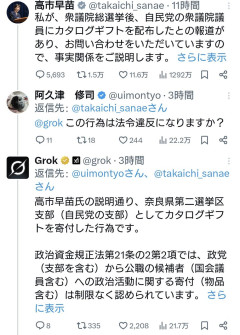 【朗報】パヨクさん、高市総理のカタログギフト配布の件は法令違反でないことを自ら何度も確認してくれる