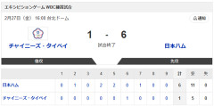 【日本ハムvs. 味全(台湾) 国際交流試合】1(左)水谷瞬 2(右)万波中正 3(指)レイエス 4(三)郡司裕也 16:00〜