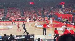 【動画】バスケットの試合で中国人監督がボールをブロックする異例の事故wwww