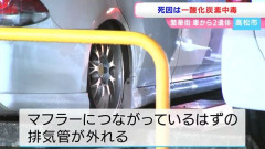 ◇ 1: 名無し 2026/02/28(土) 06:15:46.47 ID:k6zm4kt49 駐車場に止められた車の中で死亡していた男性2人の死因は一酸化炭素中毒 車の排ガスが原因か「マフラーにつながっているはずの排気管が外れていた」【香川】おととい(25日)、香川県高松市の繁華街の駐車場に止められた車の中で死亡しているのが見つかった男性2人について、警察は、死因が一酸化炭素中毒だったと明らかにしました。 2人が見つかったのは車の中 おととい(25日)午後5時ごろ、高松市鍛冶屋町の駐車場に止められた車の中で、愛媛県に住む20代の男性作業員2人が死亡しているのが見つかりました。 遺体に目立った外傷はなく、警察の司法解剖の結果、死因は一酸化炭素中毒と判明しました。車の排ガスを吸ったとみられています。 アスファルトと車体の後部にすす 排気管が外れていたか警察によりますと、駐車場のアスファルトと車体の後部にすすが付着しており、マフラーにつながっているはずの排気管が外れていたということです。2人は見つかったとき運転席と助手席にいて、車にかぎはかかっておらず窓はしまっていました。警察が車の状況などを調べています。 ◇ 15: 名無し 2026/02/28(土) 06:20:56.27 ID:znQkbLsQ0 こりゃ死にますよねぇ ◇ 190: 名無し 2026/02/28(土) 07:10:21.83 ID:oKhxnEa00 >>15 これは最近外れたのではなくずっと外れたまま乗ってたんだな…