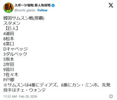 転載元: 909: どうですか解説の名無しさん 2026/02/28(土) 11:32:15.42 ID:UVcHS23N0 <スタメン> 4浦田 8松本 6泉口 Dキャベッジ 3ダルベック 5坂本 2岸田 9皆川 7佐々木 P戸郷 ベンチ入り投手は以下の通り 山崎、竹丸、山城、田中瑛、松浦、北浦、船迫、ルシアーノ ※韓国サムスン戦(那覇)スタメン【巨人】4浦田8松本6泉口Dキャベッジ3ダルベック5坂本2岸田9皆川7佐々木 P戸郷※サムスンは4番にディアズ、6番にカン・ミンホ、先発投手はチェ・ウォンテ— スポーツ報知 巨人取材班 (@hochi_giants) February 28, 2026 914: どうですか解説の名無しさん 2026/02/28(土) 11:44:22.76 ID:x8hPAAJQ0 >>909 wwwwww 変えてきたwwwwww…