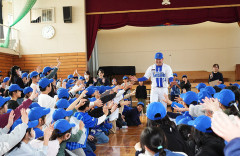 DeNA石田裕太郎が母校・屏風浦小に凱旋! 後輩キッズ大熱狂の「帽子お渡し会」 東、藤浪らも県内各地をサプライズ訪問