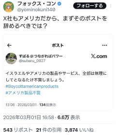 【悲報】パヨクさん、アメリカイスラエル製品は不買するようにとX(米国製アプリ)で呼びかけ