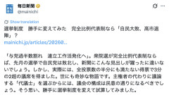 1:マーゲイ(大阪府) [US] 2026/03/02(月) 16:10:37.73 ID:fnOjnFa50● BE:135853815-PLT(13000) 毎日新聞@mainichi 選挙制度 勝手に変えてみた 完全比例代表制なら「自民大敗、高市退陣」? 「与党過半数割れ 連立工作活発化へ」。衆院選が完全比例代表制ならば、先月の選挙で自民党は敗北し、新聞にこんな見出しが躍ったに違いないでしょう。しかし、実際には、全投票数の半分にも満たない得票で3分の2超の議席を得ました。世にも奇妙な物語です。主権者の代わりに議論する「代議士」を選ぶからには、議会の構成は民意の通りになるべきでしょう。そう思い、勝手に選挙制度を変えて試算してみました。…