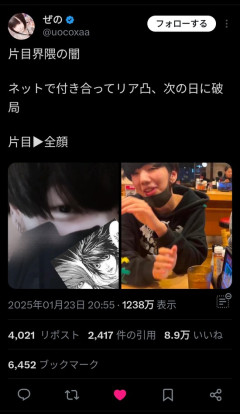 【画像】Z世代「片目イケメンと付き合った結果wwwwwww