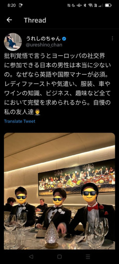 【悲報】 女さん「批判覚悟で言うとヨーロッパの社交界に参加できる日本の男性は本当に少ないの。」
