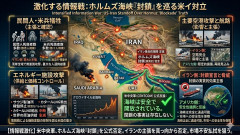 1: 名無し 2026/03/03(火) 13:10:42.15 ID:Qw9zXp7L0 米中央軍は2日、エネルギー輸送の重要拠点であるホルムズ海峡が閉鎖されたとの情報を否定した。 米FOXニュースが報じた内容として、中央軍は海峡の航行が依然として可能であるとの認識を示している。 これに対し、イランの革命防衛隊は同海峡を正式に封鎖したと発表しており、通過を試みる船舶には攻撃を加えるとの警告を発していた。米イ間での主張が真っ向から対立する状況となっている。 ロイター ■要約 ・米中央軍がホルムズ海峡の閉鎖について事実ではないと公式に反論 ・イラン革命防衛隊による一方的な封鎖宣言を真っ向から否定する形 ・エネルギー輸送の要衝を巡り米イ間での情報戦が激化している状況 ・海峡の安全性を強調することで国際市場への不安払拭を図る狙い 【速報】英国軍が米軍の後方支援 防衛目的で米軍の英国基地使用を承認 【!】 女※にテキーラ32杯飲ませホテルに連れ込み死亡させた男「※※※※目的の意図はなかった!介抱しようとしただけだ!」と裁判で無罪を主張 ... 【速報】 イスラム革命防衛隊、米軍基地を攻撃「米軍200人の死傷者」 イランはさらなる強力な兵器使用を示唆…