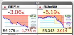 【悲報】日本株、大幅下落 中東戦争拡大でリスクオフ