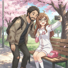 ピンクの電話の清水よし子、ホームレス風の男性と2ショット自撮り