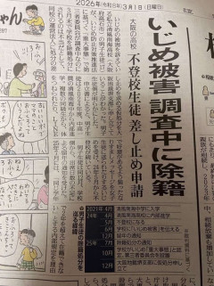 1: 2026/03/04(水) 08:41:14.77 いじめ「重大事態」調査中に除籍、大阪・私立高生徒の差し止め申請を地裁支部が却下…「裁量権の範囲を超えているとは認められない」 いじめ被害を訴えて不登校になった大阪府内の私立高校の男子生徒(17)が、第三者委員会の調査中に除籍処分にされるのは不当だとして、同校の運営法人による処分の差し止めを求めた仮処分申し立てについて、大阪地裁堺支部(山田裕章裁判官)は、生徒の請求を却下する決定を出した。2月27日付。生徒側が明らかにした。【偏差値S+】大阪府高石市私立清風南海高校備考 : いじめ被害者を調査中に退学処分 pic.twitter.com/n71AIon26O— DEATHDOL NOTE (@DEATHDOL_NOTE) March 3, 2026 ※関連記事 【画像】X-MEN「学生時代いじめられてた男性はこういうヤンキー女に興奮する」…
