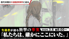 1: 2026/03/04(水) 20:25:15.47 ID:6Zhs2OPD0 「私たちは、確かにここにいた。」 決して忘れてはならない、前代未聞の大量監禁事件。 ーーこれは、生還者である少女が語る《はじまりの物語》。…